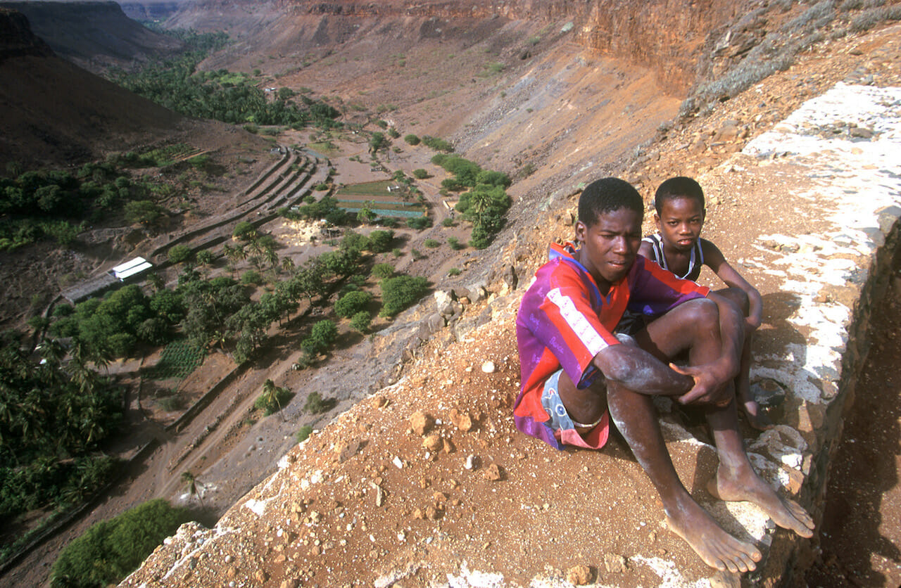 Cabo Verde, Isla Santiago, valle, niños del pueblo