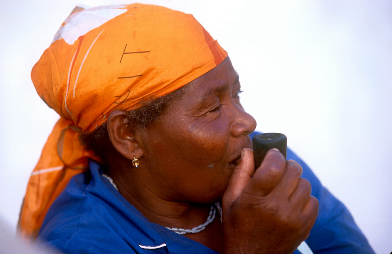 Cabo Verde, Isla de Sal. Señora fumando en pipa