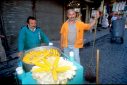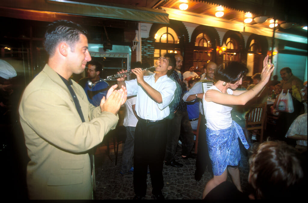 Estambul, calle de restaurantes, al borde del Bósforo