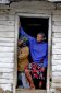 Túnez, Gran Sur, trogloditas, Matmata, Familia el la puerta de su casas