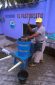 Bolivia, Beni, rio Mamore, transporte fluvial del ganado, Trabajador