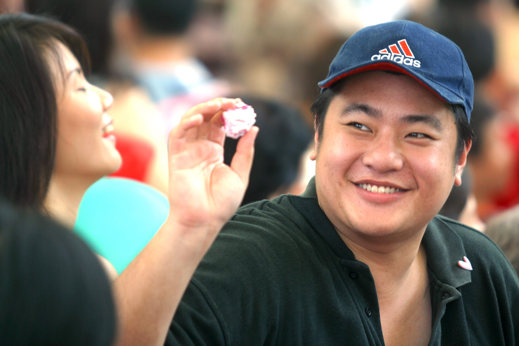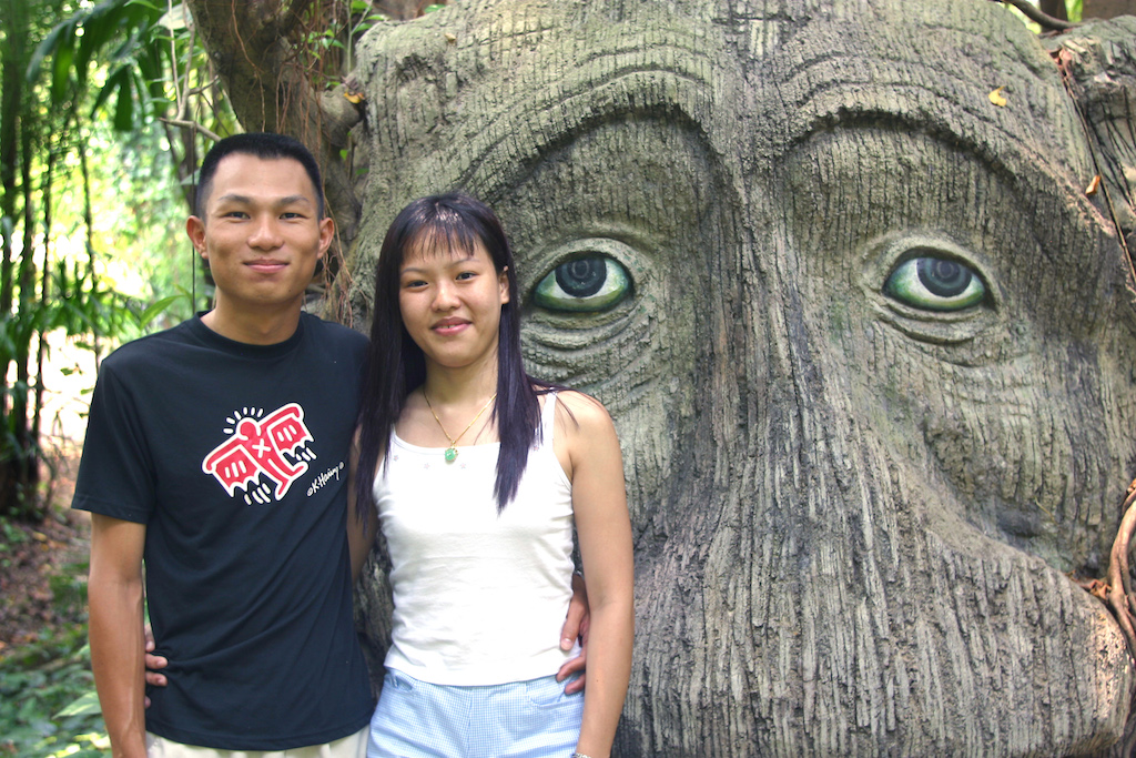 Singapur, Isla Santosa, pareja de visitas al Jardín Encantado