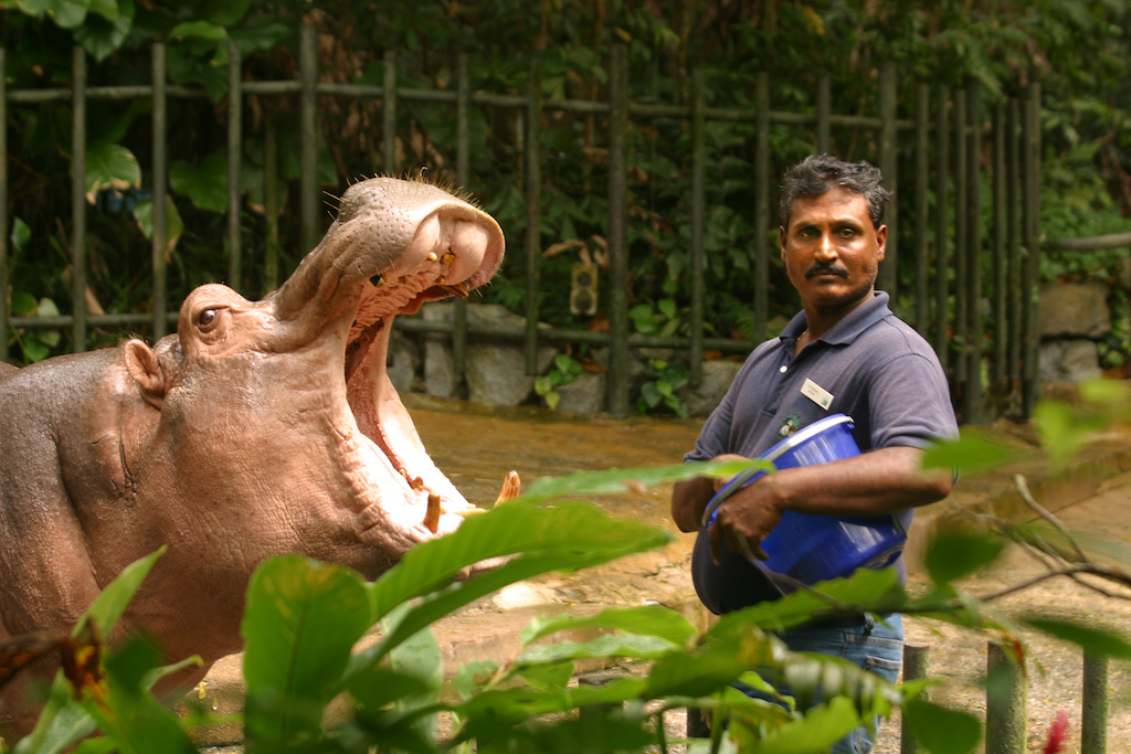 Singapur, Zoológico, Alimentar los Hipopótamos